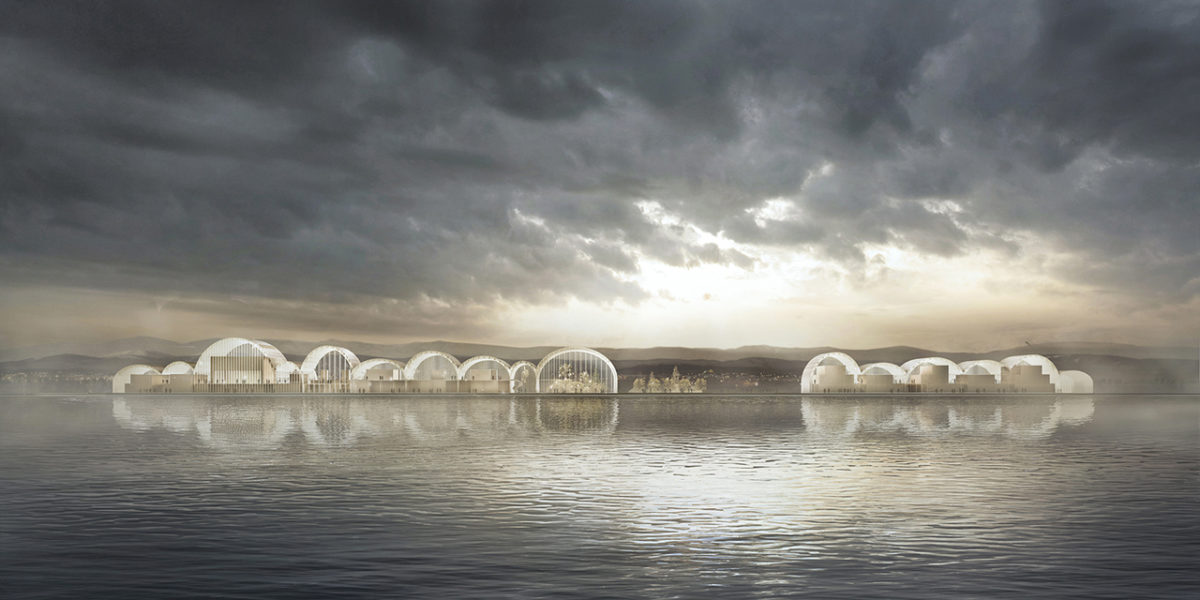 Conceived as a shelter in allusion to typical polar installations, the International Antarctic Center is organized under 16 barrel vaults that face the Strait. Both at night and daytime, the building’s skyline is easily recognizable when approaching the airport. Due to the translucent membranes that cover their roofline, the vaults are perceived as a row of lanterns or sea buoys tied to the waterfront. Its linear distribution ensures capability of growth and adaptation in time.